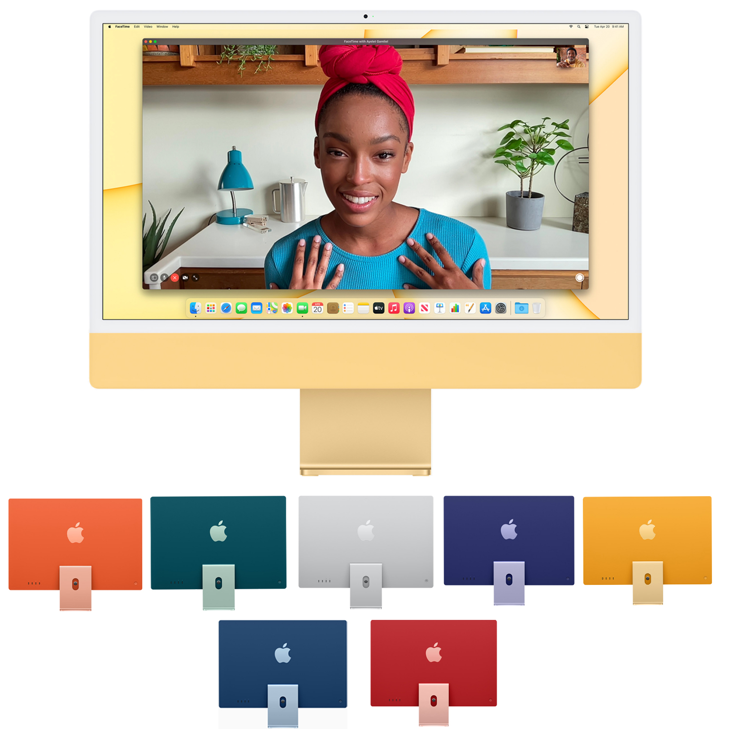 Bên cạnh làm mới thiết kế, iMac 24 inch M1 còn sở hữu "7 sắc cầu vồng", với 7 tùy chọn màu sắc gồm xanh lá cây, vàng, cam, hồng, tím, xanh dương và bạc.